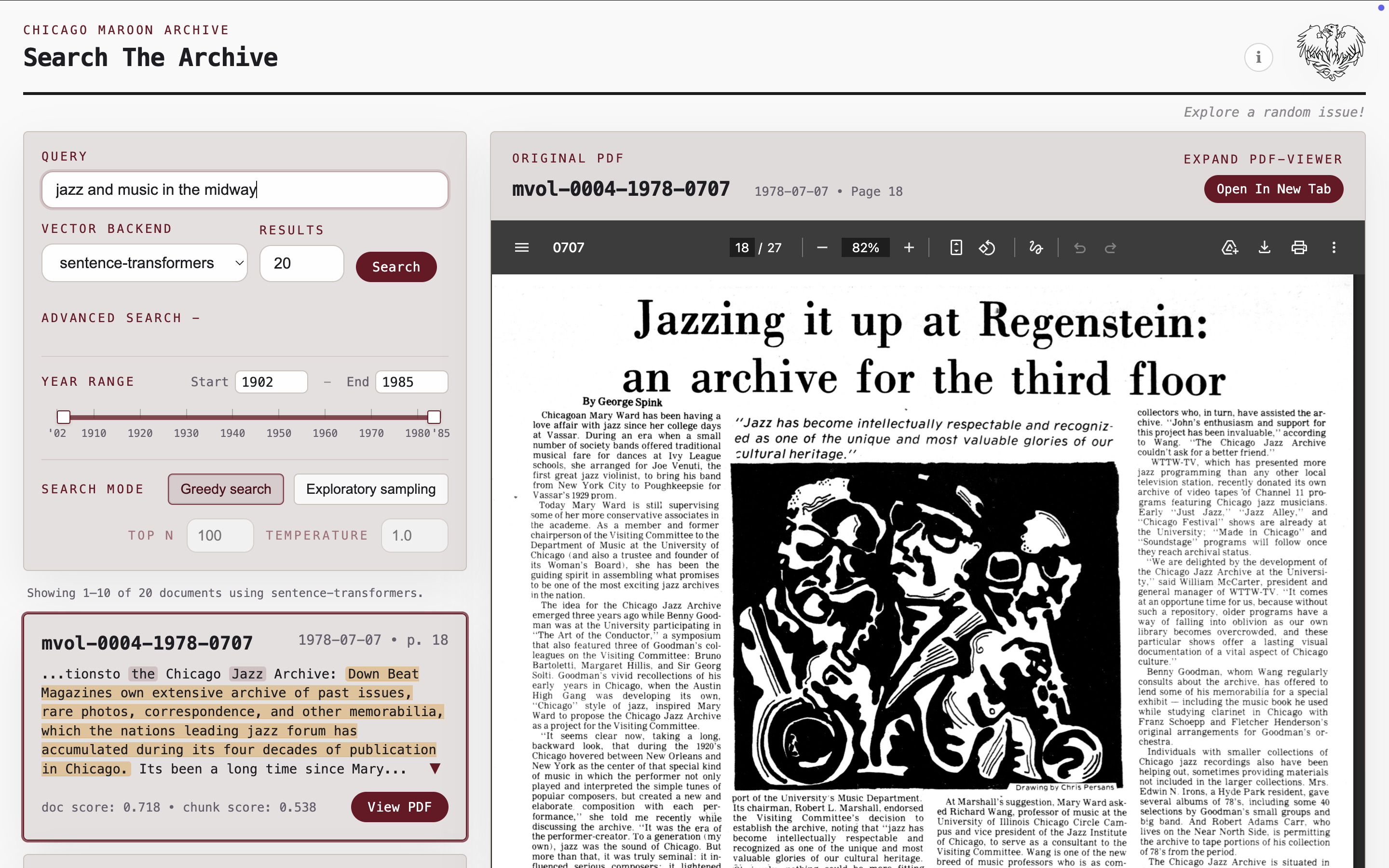 A semantic retrieval tool to query UChicago's student newspaper archive from 1902-1985. Sentence embeddings, FAISS, full-stack: Cloudflare R2 + Pages, Hetzner VPS + nginx.